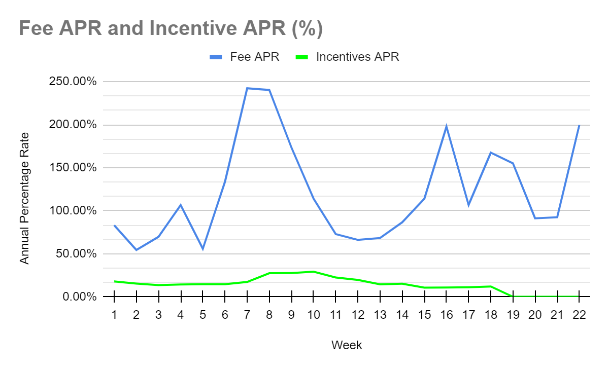 We retained the majority of our TVL and fees post-incentive period (Weeks 19+); understandably, they did shrink by declines shown in our post-incentive stats above. There was no drop in post-incentive volumes.